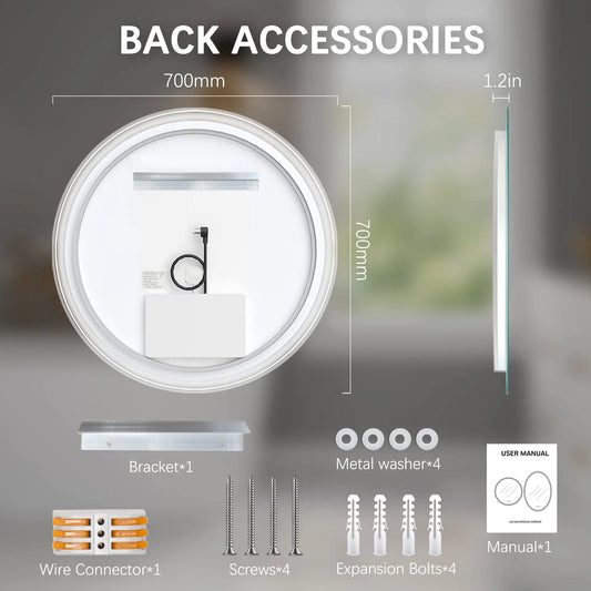 28 Inch Round LED Bathroom Mirror - Wall Mounted