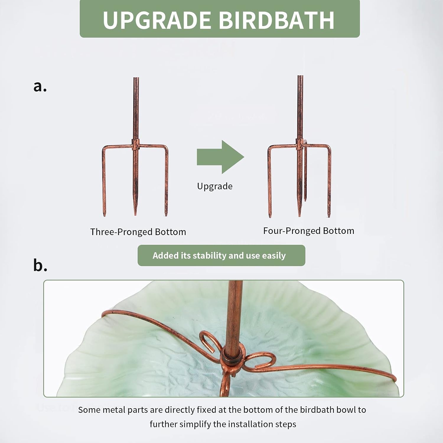 - Green bird bath upgrade 4 - pronged sturdy ground forked staked
