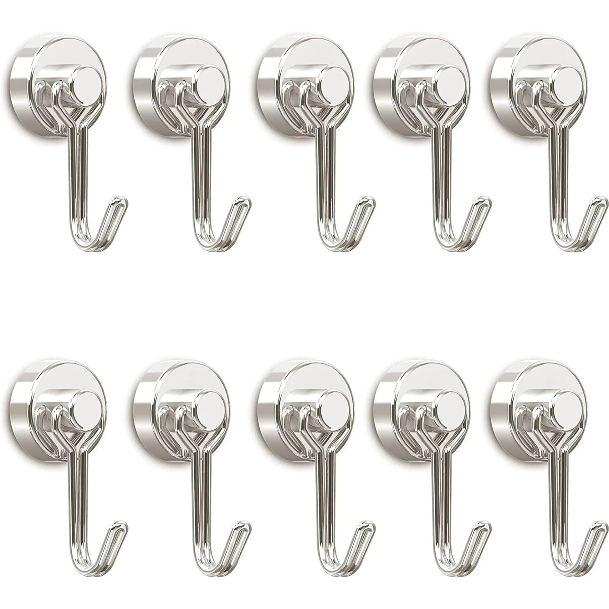 4Pcs 8 Pcs Magnetic Hooks, Heavy Duty 30LBS Neodymium Magnet Hook for Indoor or Outdoor Hanging, Refrigerator, Grill, Kitchen, Laundry, Key Holder - Silver