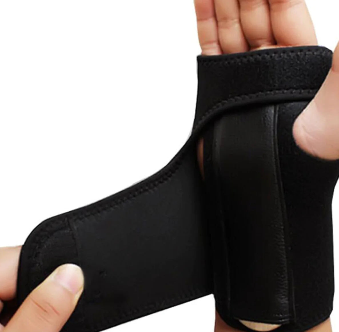 Breathable wrist and hand support brace made with metal PU fabric for adults. Ideal for sports, fitness, carpal tunnel, sprains, and arthritis relief. Size: 32×17.5cm. Protects palm during activity.