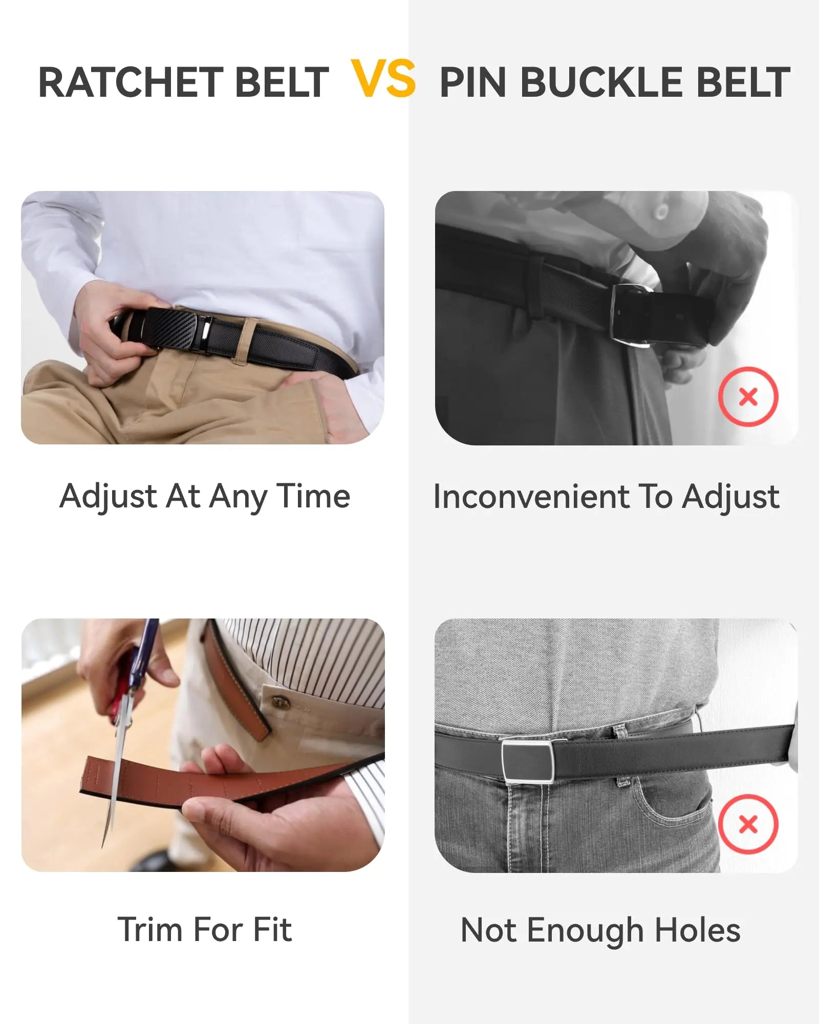 CHAOREN SleekFit Men's Leather Ratchet Belt