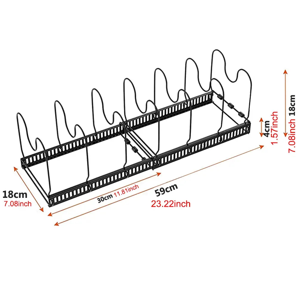 Transform your kitchen into a clutter-free haven with our Cookware Storage Rack. Designed to hold all your pots, pans, and lids, this rack helps you utilize vertical space efficiently, giving you more room for cooking and creativity.