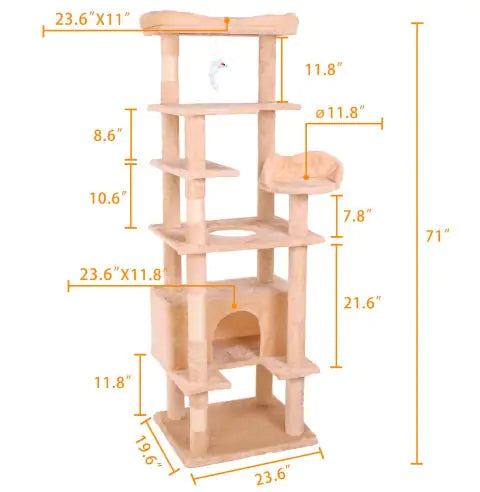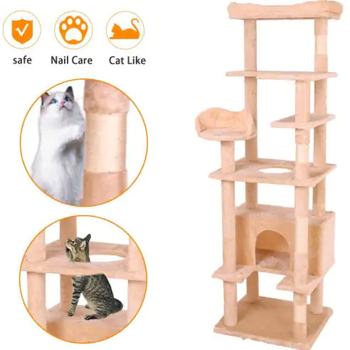 【Pet Friendly Materials】This tall cat tree tower is made of pet-safe artificial wood and covered with soft plush fabric to provide a safe living and play space for your beloved pet.