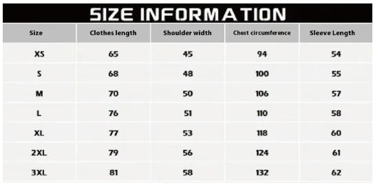• Size Options: S, M, L, XL, XXL, XXXL