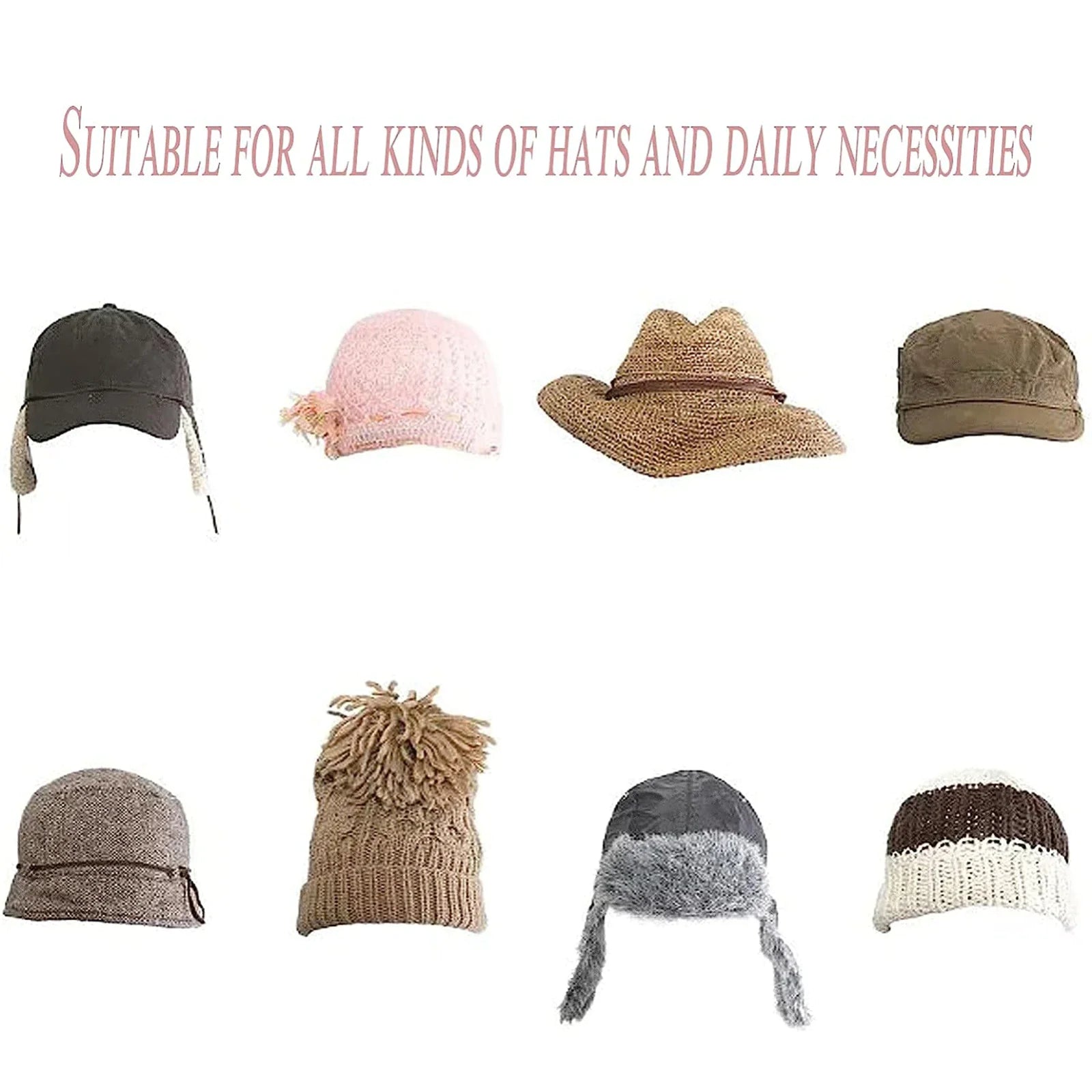 ![]() Low Profile Design Our hat holder uses conceal design. The hat hangers for wall is designed to showcase your hats, not the hook. When your hats are hanging, the hooks are mostly hidden behind. ![]() Strong & Durable Wall hat rack uses strong adhesive, no nails or drilling, which holds up to 3 pounds. We use a strong adhesive to ensure your hat hangers stay mounted over time. It is suitable for most flat and clean surfaces. Please don't use the adhesive hat hooks on wallpaper or rough surfaces because of the strong adhesive. ![]() Preserve Hat Shape The hat hooks for wall use curved design to keep your hats damage-free, which is different from other traditional hat organizer. Other conventional wall hat hooks or nails put too much weight on a single point on the back of your hat, warping hats. ![]() Multi Functional The hat storage solution for almost all kinds of hats including baseball caps, hi-hop hats, snapbacks, fitted hats, visors, and flat-brim hats. The hat wall hanger can also be used as headphone hanger and other household items that weigh under 3 pounds. Package includes: