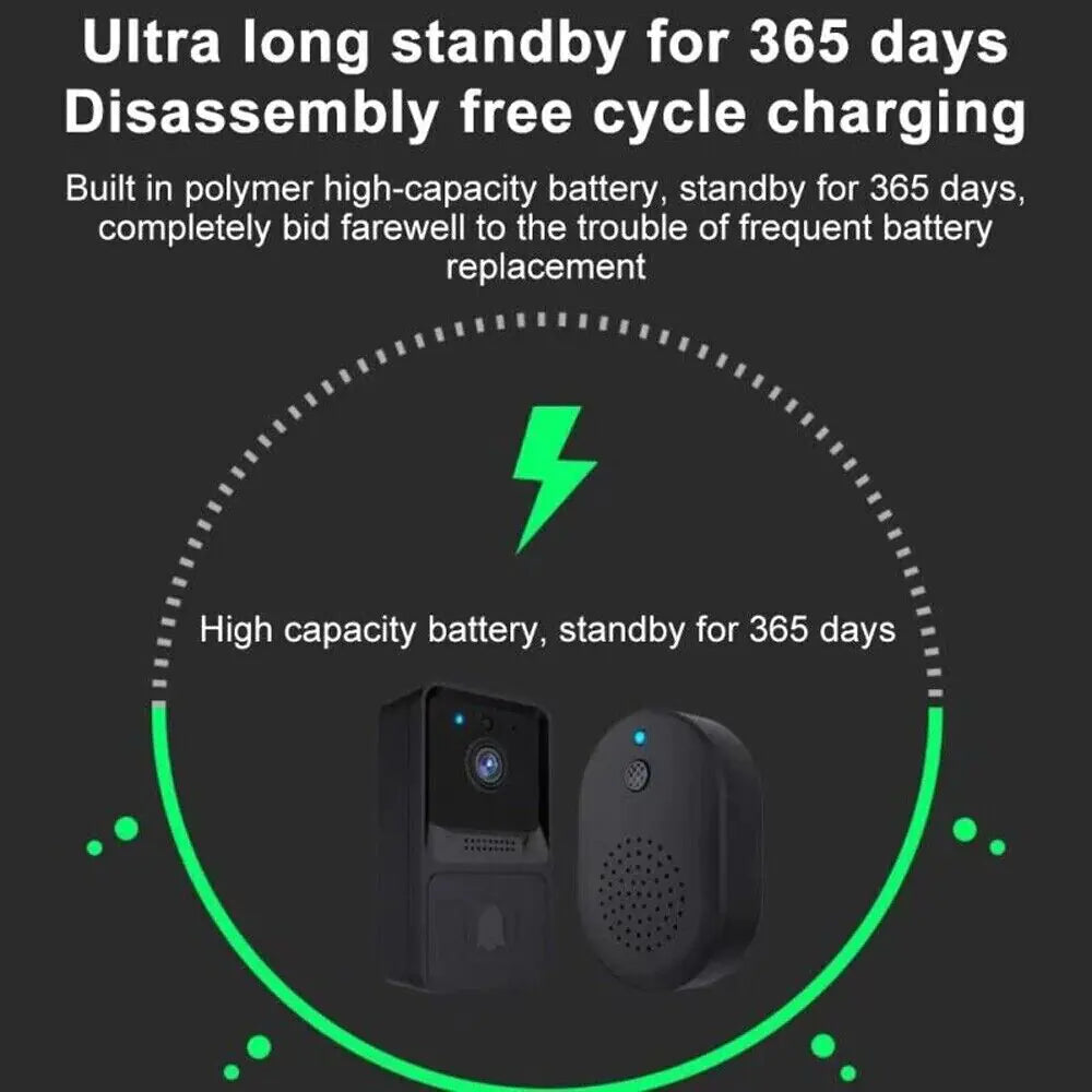 ![]() Doorbell + Chime After someone rings your doorbell camera, the doorbell camera will record and send the notification to your phone instantly. Equipped with an indoor chime, the doorbell camera will let you know the visitor's records whether you are inside or outside the house, and you will not miss any moment. ![]() Two Way Talk Audio Upgraded microphone & speaker with a built-in anti-noise filter, our wireless doorbell allows clear real-time two-way communication with your visitors via your smartphone at anytime, anywhere. Our door bell supports 1 main account and 8 shared users, make it easier for multiple family members to know who is visiting your home. ![]() Wide View + Night Vision This video doorbell has a 110° view angle lens, provides a broad security perspective compared to other doorbells. Advanced night vision with 2 built-in 850nm infrared lamps will switch automatically according to the brightness around, allows you to clearly see every visitor even at night. ![]() Instant Notification When a visitor rings the doorbell, you'll receive a "device call" push notification on your phone, which you can answer and enter into a video call. Won't let you miss any friend's visit and package delivery. Package includes:
