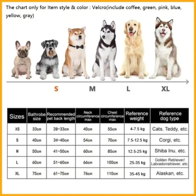 The robe is designed with adjustable Velcro fasteners on the back, ensuring a secure and comfortable fit that's easy to adjust around your pet’s waist. More than just a bathrobe, it's versatile enough to keep your companion snug and warm overnight, serve as a cozy towel, or even act as a protective coat during colder months.