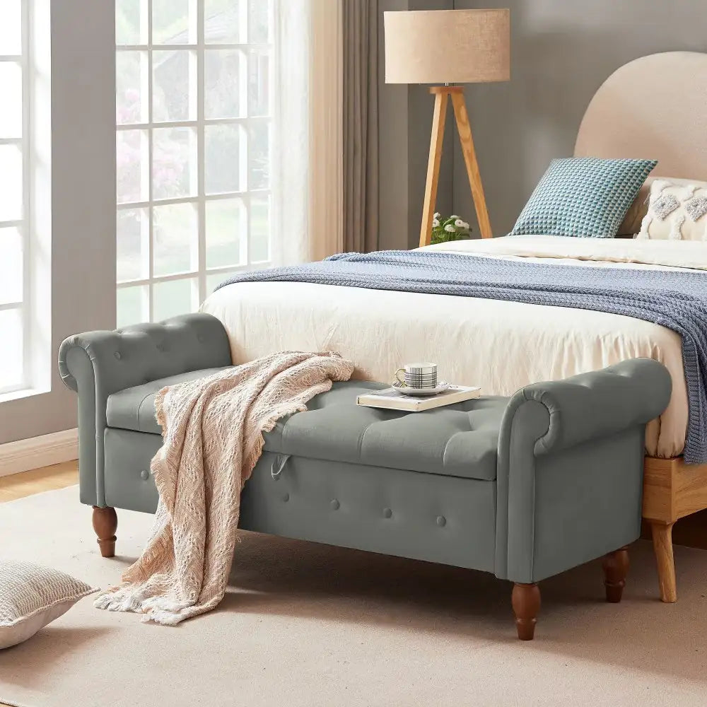 Velvet Multifunctional Storage Rectangular Sofa Stool - Grey