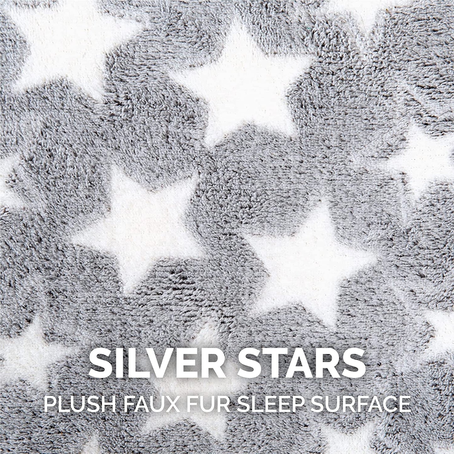 - PRODUCT DETAILS: Cozy Cave, Silver Stars; Small - 15" x 13" x 13"