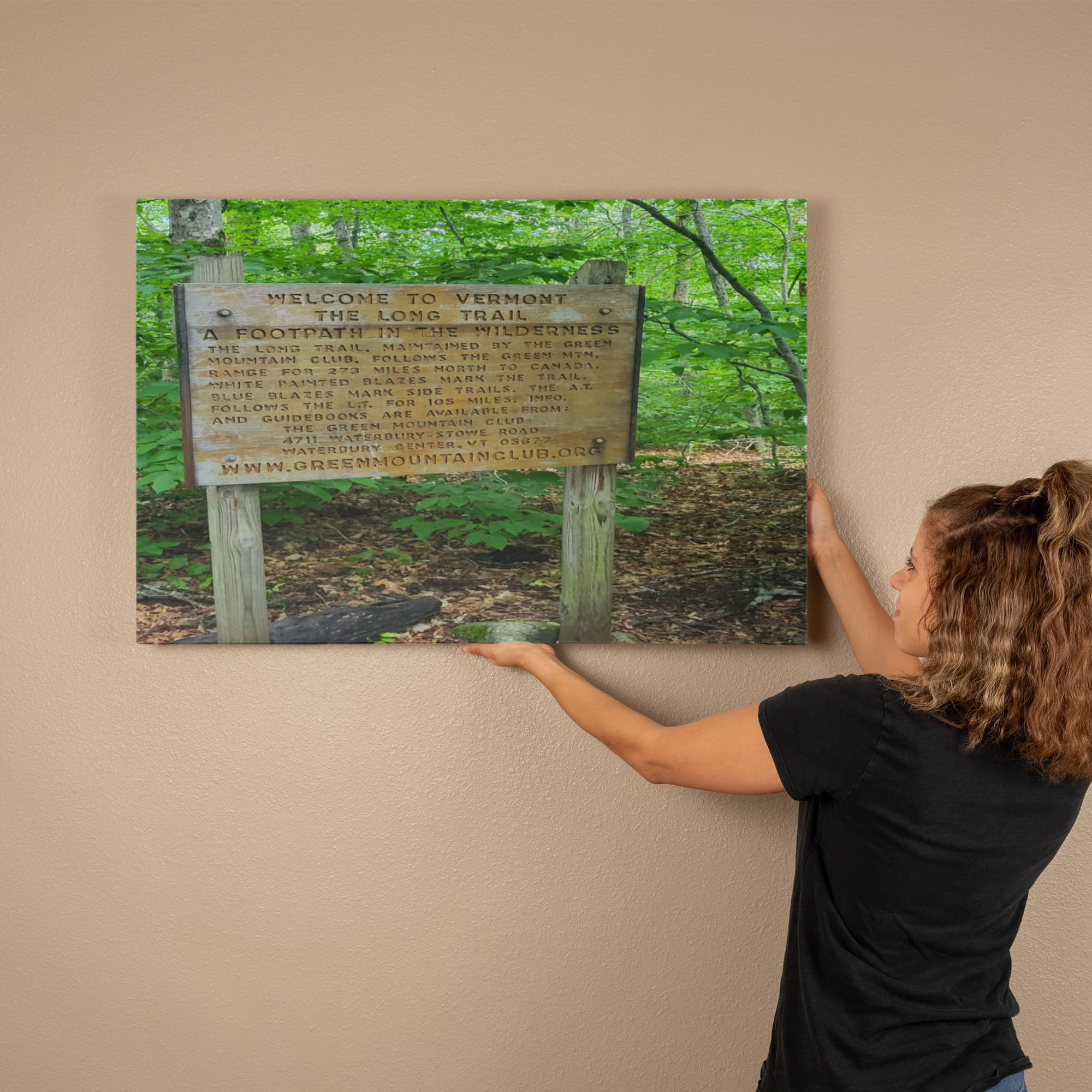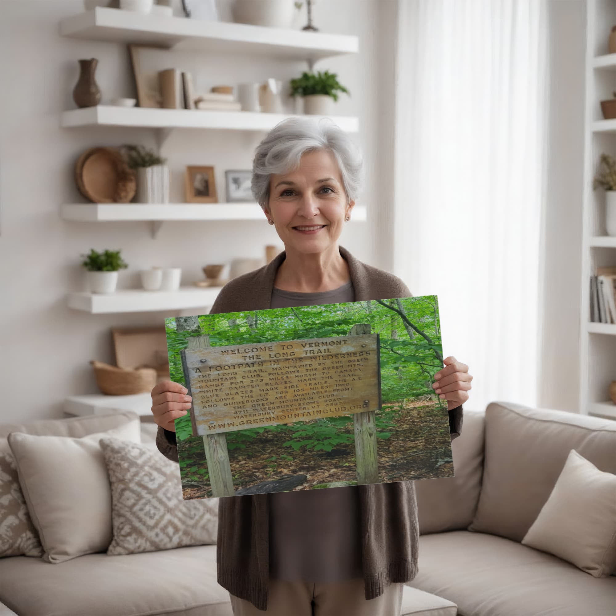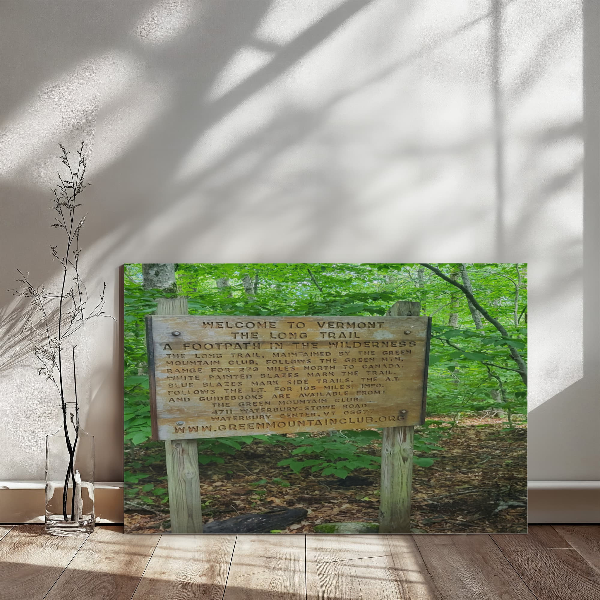 A weathered wooden sign stands at the threshold of Vermont’s legendary Long Trail, inviting adventurers into the heart of the Green Mountains. A gateway to history, endurance, and the untamed beauty of the wilderness.